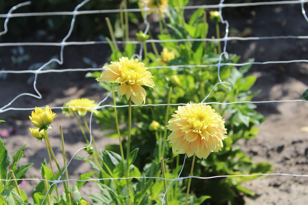 Plant dahliaknollen van mei tot begin juni op een zonnige plek. Zet de knol net onder de grond met het oog naar boven. Houd 30-40 cm ruimte tussen de knollen en geef licht water.