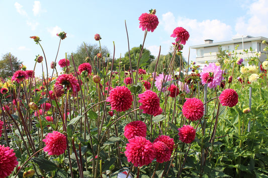 Ontdek de prachtige Dahlia 'Labyrinth Twotone', een betoverende roze variëteit die tuinen van juli tot en met oktober een ware blikvanger maakt. Deze rechtopgaande dahlia bereikt een hoogte van 1-1,2 m en gedijt in de volle zon, waardoor hij perfect is voor borders, kusttuinen en snijbloemen. Plant de knollen 10 cm diep met een dosering van 5 per m² voor een spectaculaire aanblik. Deze gemakkelijk te kweken schoonheid is van nature resistent tegen herten, konijnen en muizen en trekt nuttige bijen aan. Ze vestigt zich al in het eerste jaar. Ideaal voor tuiniers van alle niveaus die op zoek zijn naar betrouwbare, langdurige bloei op een open plek.