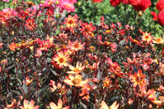 Plant dahliaknollen van mei tot begin juni op een zonnige plek. Zet de knol net onder de grond met het oog naar boven. Houd 30-40 cm ruimte tussen de knollen en geef licht water.