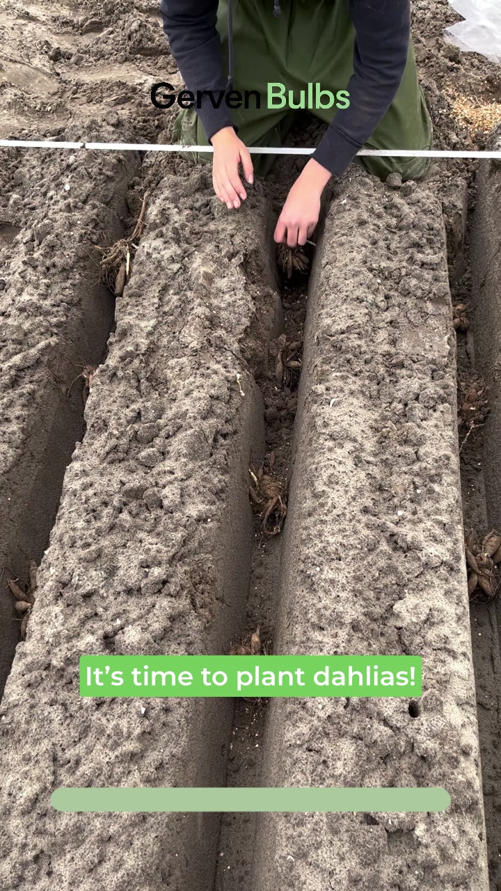 Plant dahliaknollen van mei tot begin juni op een zonnige plek. Zet de knol net onder de grond met het oog naar boven. Houd 30-40 cm ruimte tussen de knollen en geef licht water.